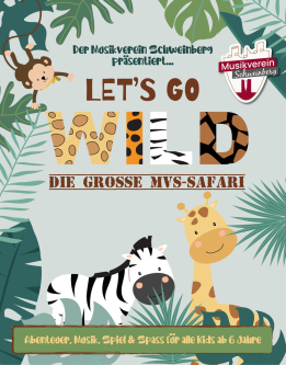 Als Teil des Nachwuchsprogrammes „MVS for Kids“ möchte der Musikverein Schweinberg mit „Let´s go WILD – Die große MVS-Safari“ den Kindern und Jugendlichen einen kleinen Einblick in die Vielfalt der Musik ermöglichen. Vor allem das gemeinsame Miteinander und der Spaß sollen bei den Treffen nicht zu kurz kommen. So stehen passend zum Motto diverse Spiele, verschiedene Musik- und Bastel-Workshops, sowie Dschungelprüfungen auf dem Programm.