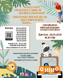 Du bist mutig, neugierig, mindestens 6 Jahre alt und hast Lust auf Abenteuer? Dann werde Teil unserer „Safari-Crew“ und begebe dich mit uns auf eine mehrwöchige, spannende Entdeckungsreise.